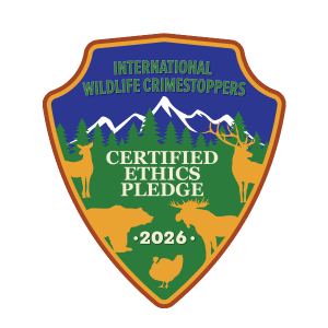 The certified pledge is for guides, outfitters, businesses, and individuals who operate and associate with sportsmen and women in the outdoors and want to pledge their commitment to help stop wildlife crime. Wildlife Crimestoppers will maintain a list of certified pledges and post it on their website for those looking for like-minded outdoor businesses, conservation groups, and individuals committed to helping stop wildlife crime. Entities and individuals that take the Wildlife Crimestoppers certified pledge will be given a five-inch gold decal, which they can display at events, shows, or anywhere to identify themselves as certified Wildlife Crimestoppers pledged. Electronic images will also be issued for use on websites and in publications. This image is not to be shared but only for the pledge’s use. If requested, we will not post your information to the list on the website.